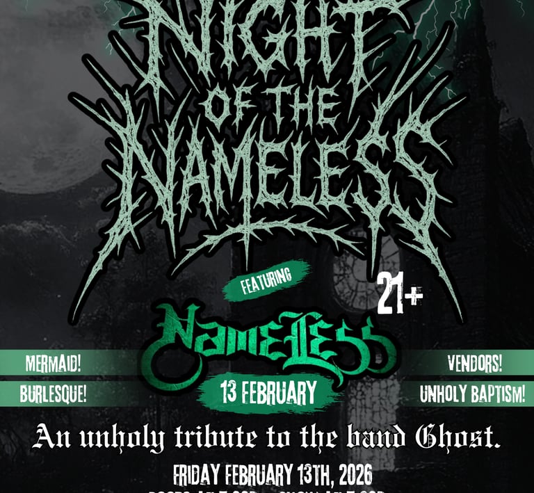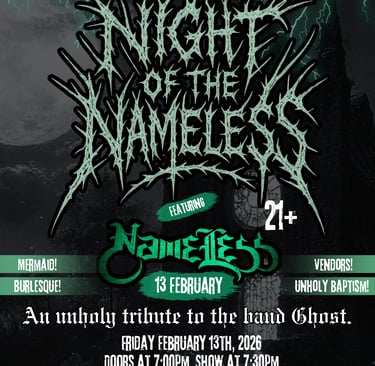 At Nameless, we pride ourselves on crafting a live show that encapsulates the full theatrical energy reminiscent of the iconic band Ghost. Every performance is a unique experience, meticulously designed to engage our audience and elevate the atmosphere. Whether it’s a full electric set that gets the crowd on their feet or an acoustic performance that offers an intimate vibe, we tailor our music to suit the spirit of the night and our audience’s desires.
